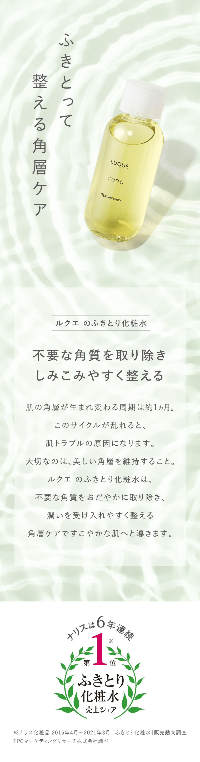ルクエが選ばれる3つの理由 80年以上の歴史。ふきとり化粧水のパイオニア!